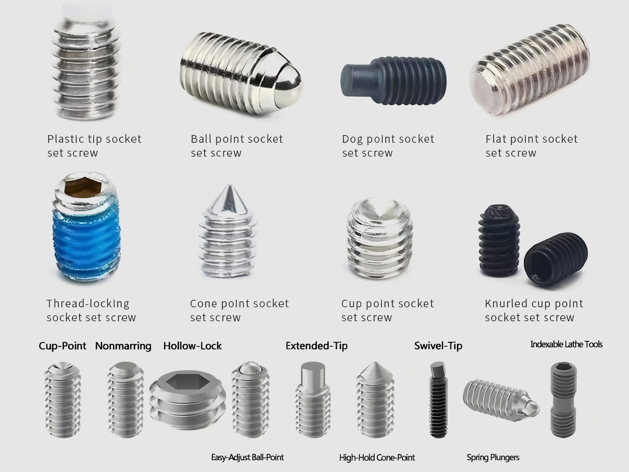 Beyond the point type, set screws can also be categorized by other features: